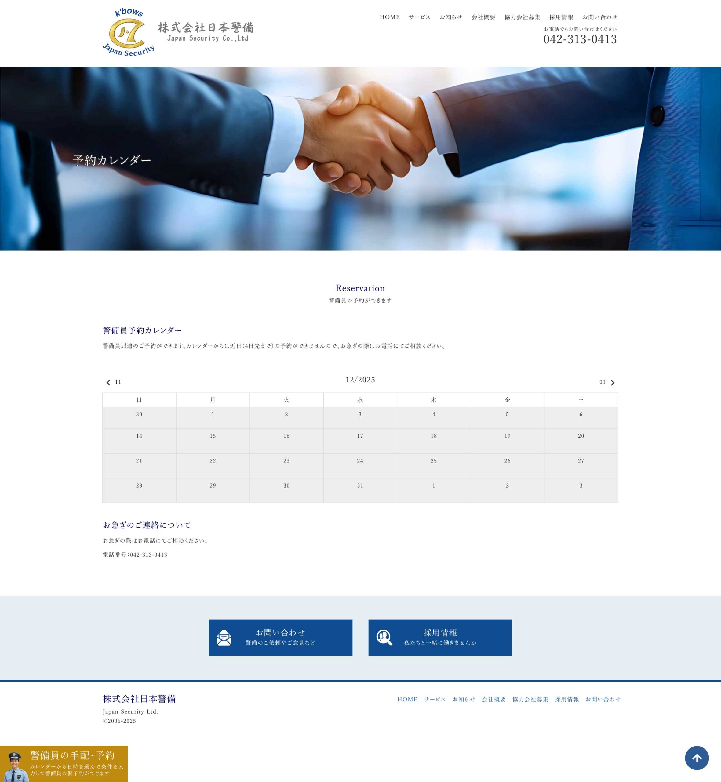 弊社ウエブサイトから警備員の予約ができるようになりました